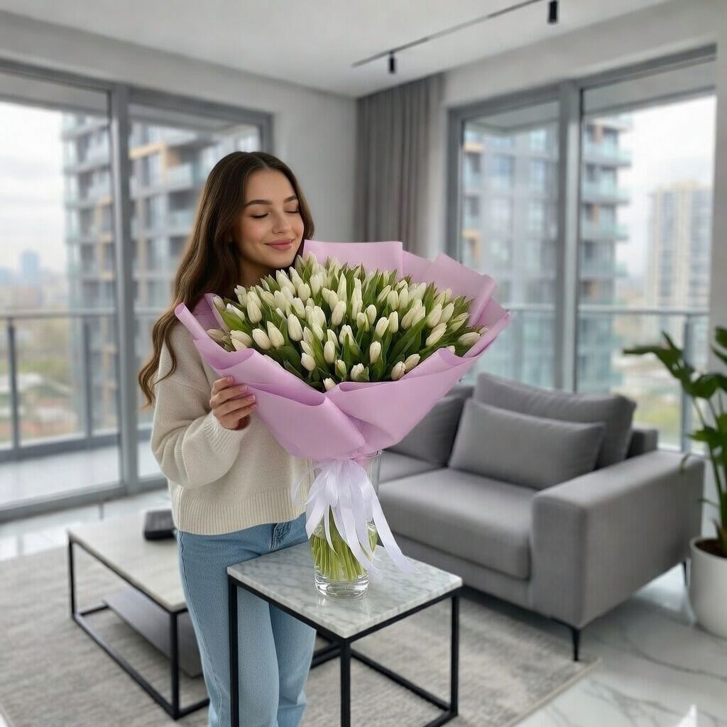 В Абидосе Белые тюльпаны (151 шт) часто выбирают для поздравлений, романтических моментов и праздников. Такой букет часто выбирают для сюрприза.