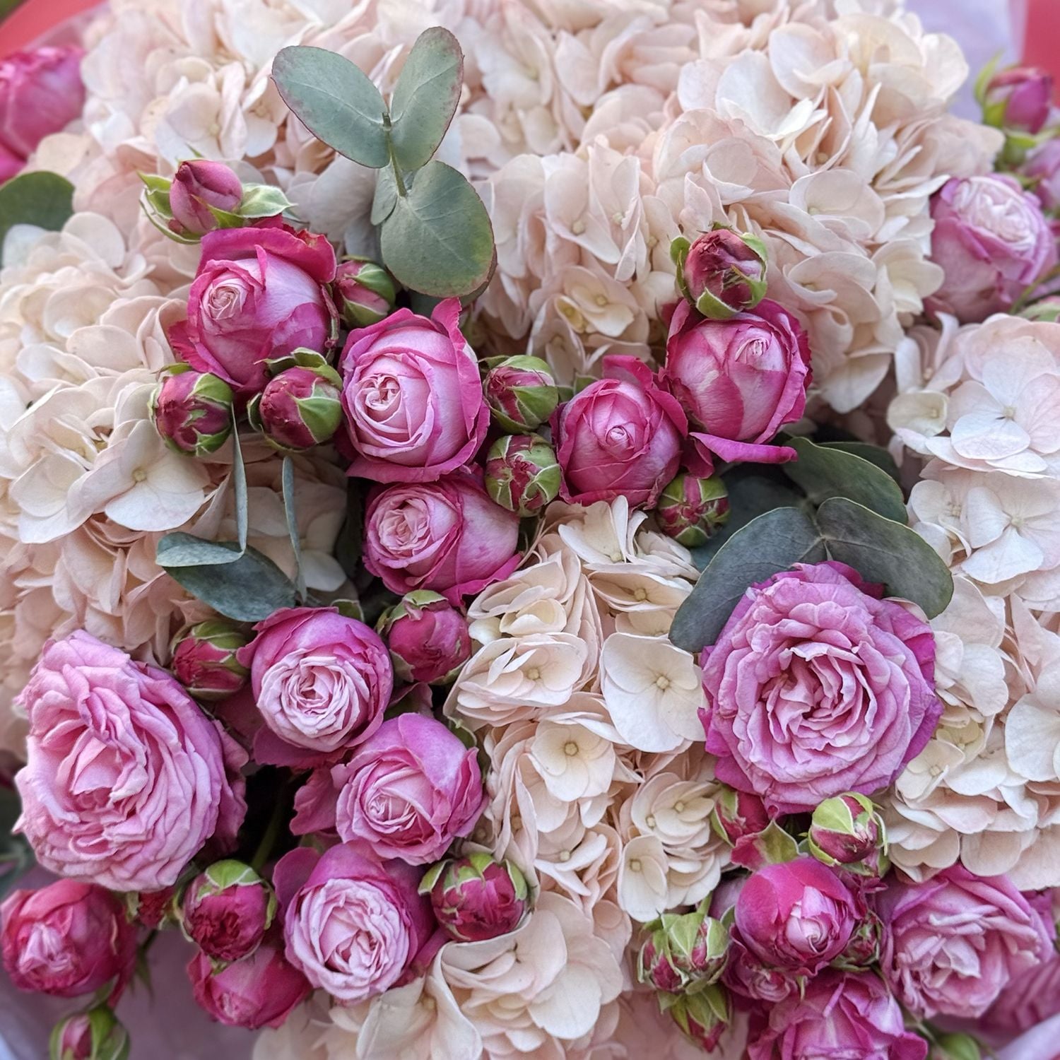 Пудровый букет гортензий и роз