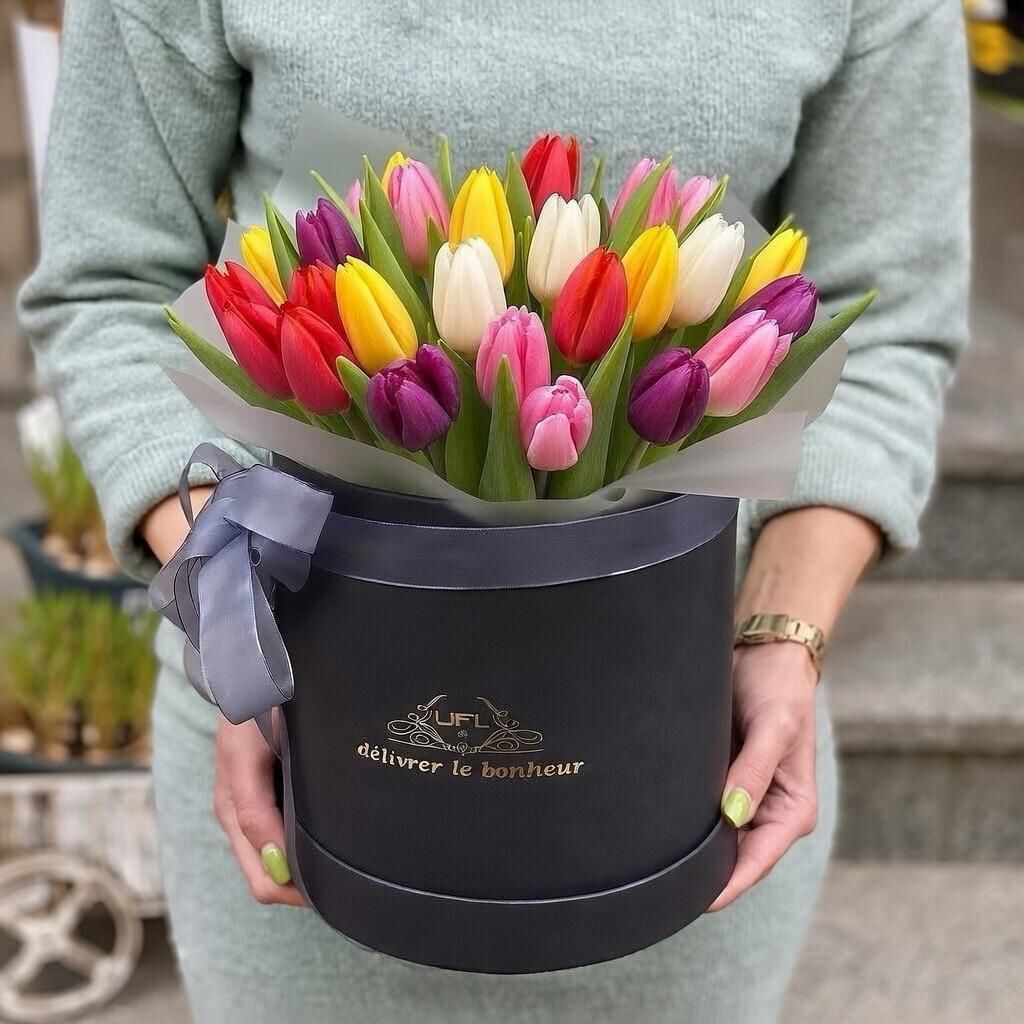 Букет Разноцветные тюльпаны в коробке 45шт в Долинской — это отличный выбор для подарка на любой случай. Такой букет часто выбирают для праздника.