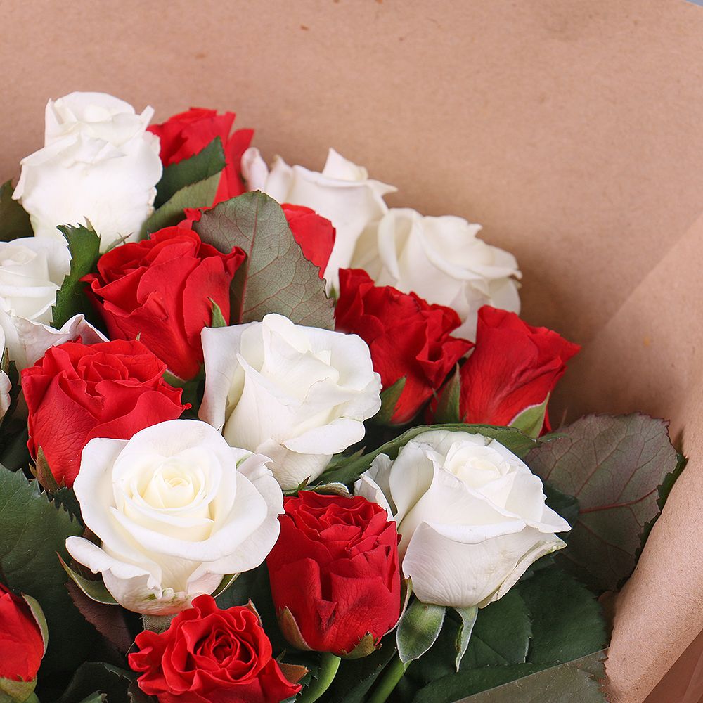 Buy a 25 red and white roses with delivery in Aucamville