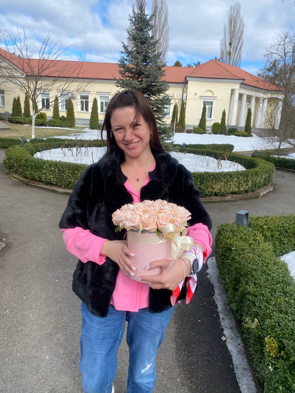 Buy a Cream roses in a box with delivery in Belgorod_dnestrovskiy