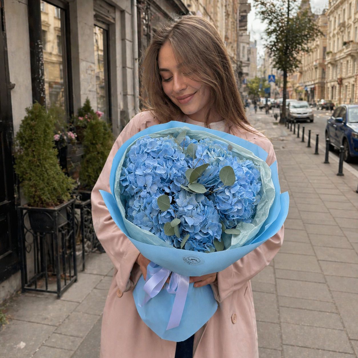 Bouquet Bouquet 5 blue hydrangeas in Belozerka — this is a great choice for a gift for any occasion. This bouquet is often chosen for an important event.