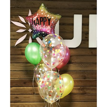Balloons are loved by adults and children, so they are often used as an addition to a gift. Compositions of multi-colored balls bring a maximum of positive emotions and return to childhood. We offer you an incredible "Ha with delivery on Bialystok 🌸 Price 127 $ ✅ Call and order! Balloon foil star 1 шт., Balloon latex 14 Celebrate (usual) 6 шт., Helium 8 шт. included.">