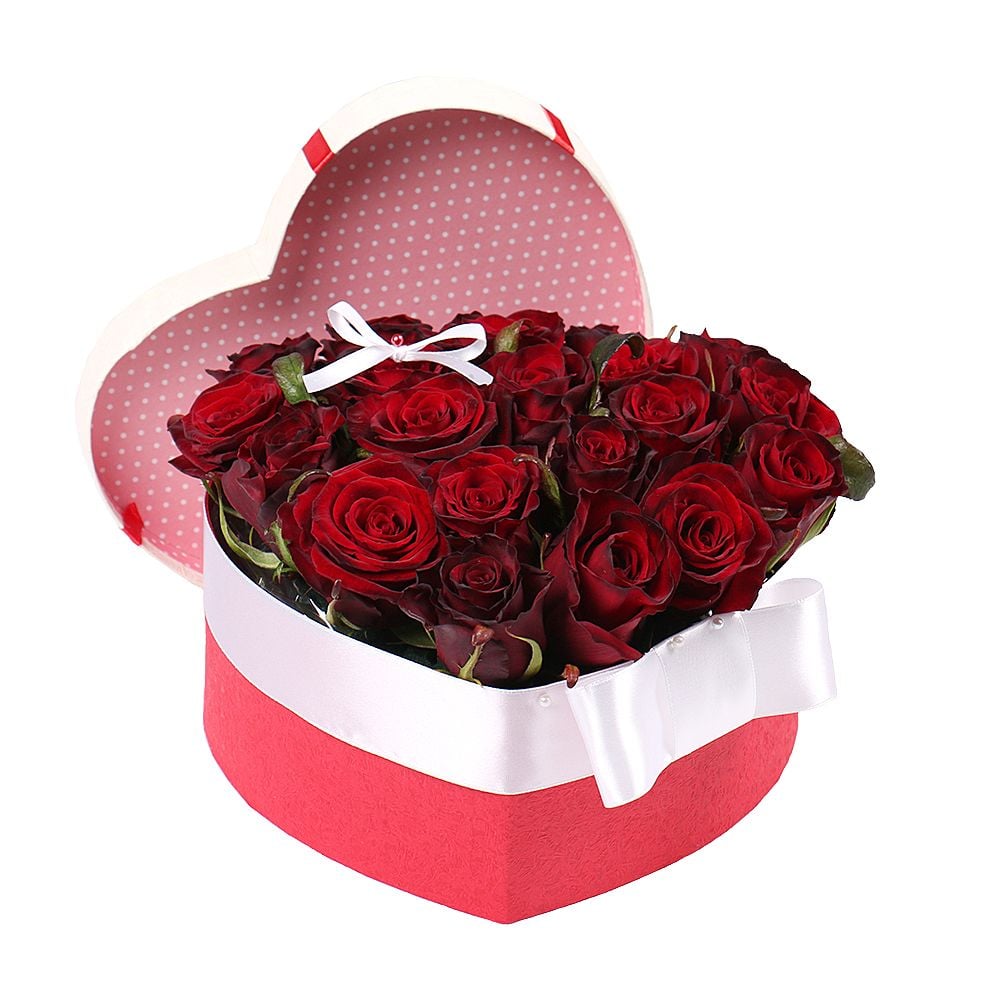 Buy a Heart of roses in a box with delivery in Fullerton