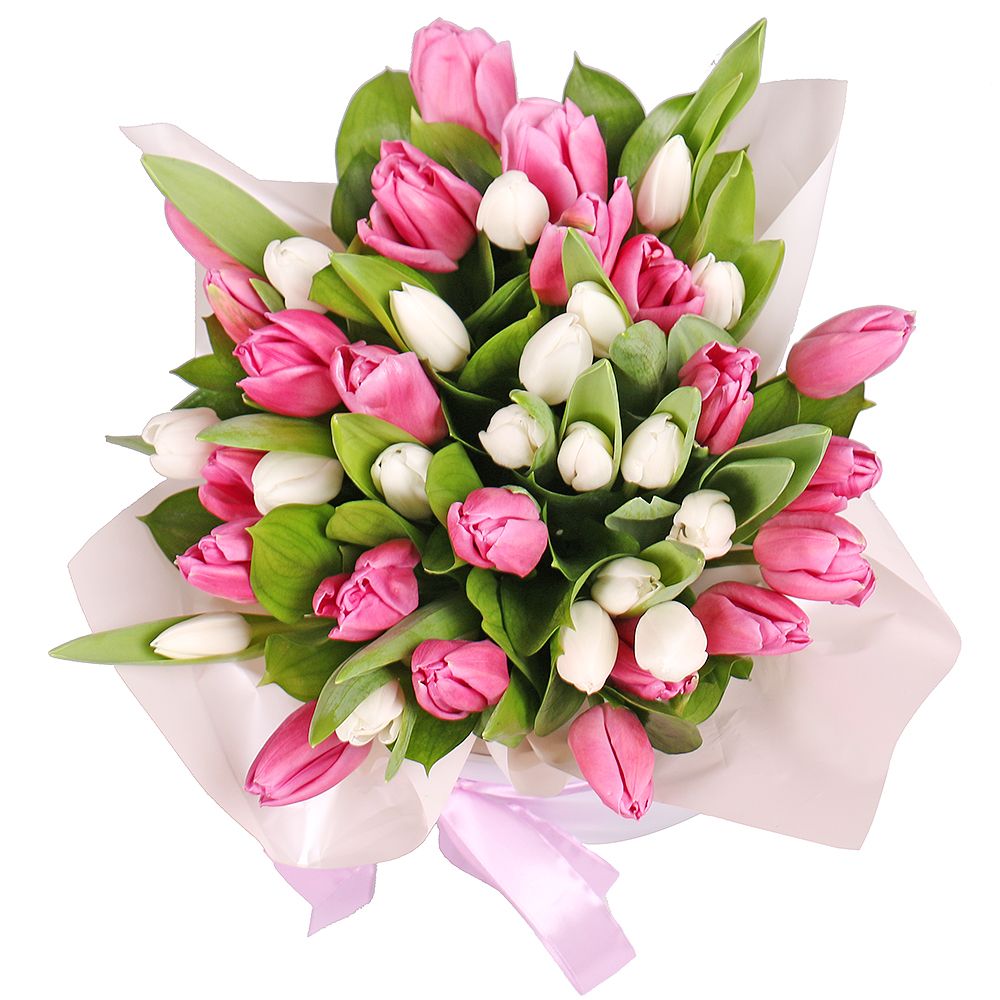 Buy a Pink and white tulips in a box with delivery in Radomyshl