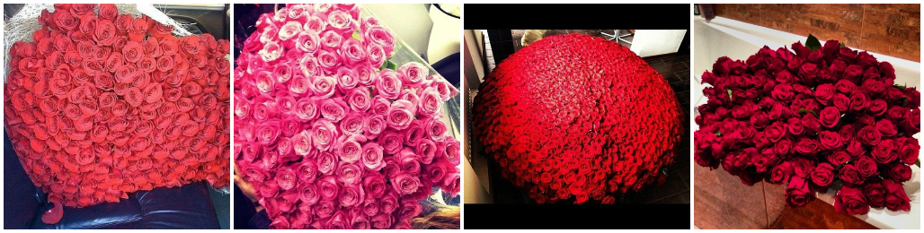 Среди самых престижных флористических подарков, достойных королевы, первое место занимают огромные букеты роз. Только представьте себе - 101 роза: букет на фото выглядит пышным, но фотография не передает всего величия и красоты этого флористического чуда. В реальной жизни для доставки подобного «букетика» адресату понадобится автомобиль с просторным салоном или грузовым отделением, а вносить его в квартиру или офис нужно вдвоем. Однако влюбленные мужчины готовы снова и снова заказывать своим любимым  роскошные букеты из роз, воплощающие: