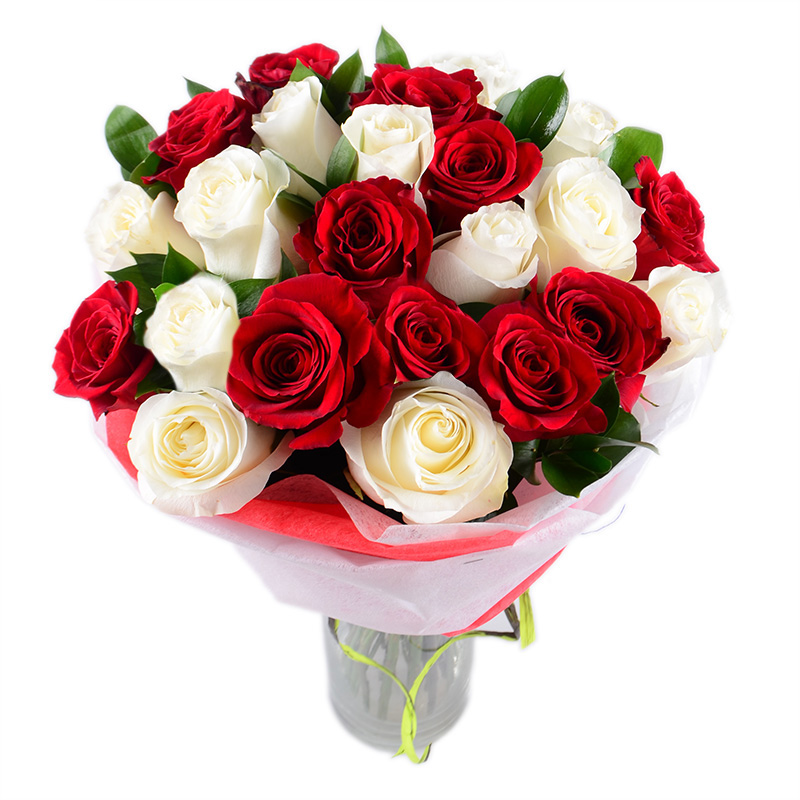 2. Букеты для влюбленных. Сочетания представителей флоры различные. Оптимальный вариант – это цветы с крупными бутонами. Например, невероятные розы красные и белые очень гармонично выглядят и пахнут настоящими, теплыми любовными чувствами. Немного волшебства наших специалистов, роз и зелени, и у вас уже готово признание в любви или, как вариант, ароматный презент молодоженам на свадьбу!