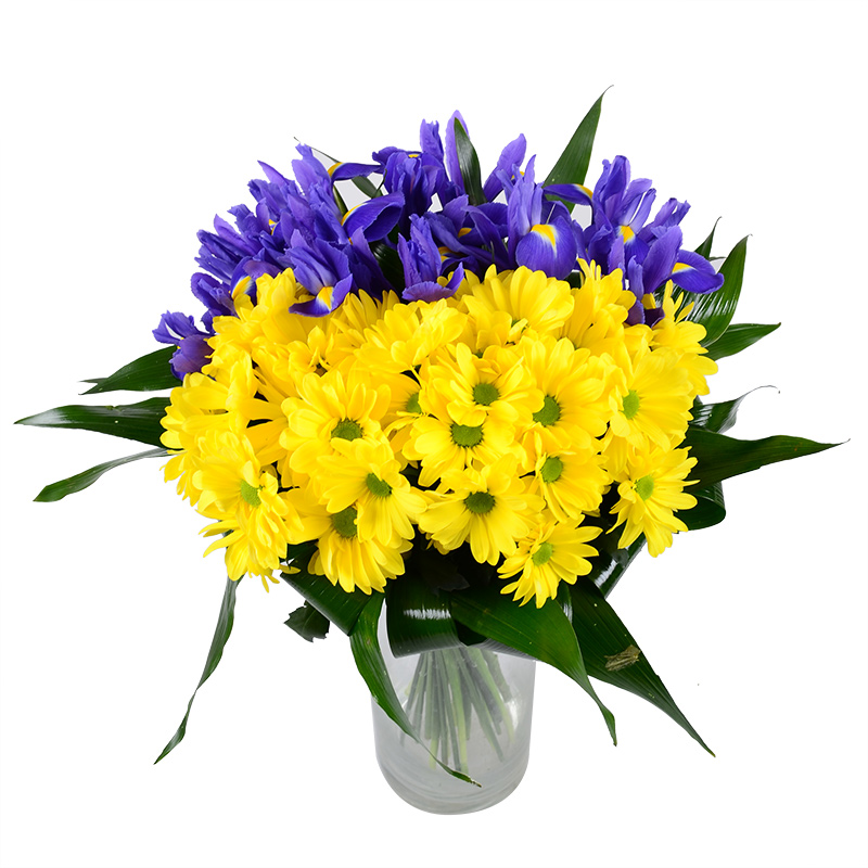 5. Украинские букеты в ярких цветах национального флага. Весело, ярко и с идеей. Что же может быть приятней, чем внимание и букет со смыслом? Хризантемы – это насыщенные цветы, которые имеют невероятно разнообразную палитру. Поэтому идей с ними просто уйма. Настоящим патриотам такие композиции точно придутся по душе.