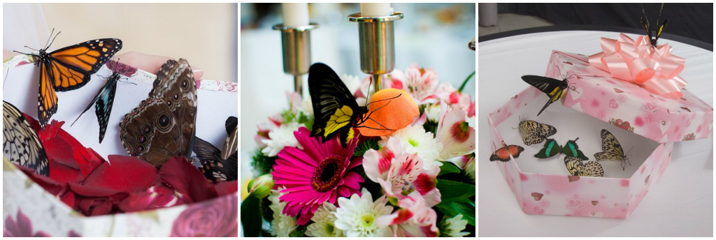 Обычно дарят не одну, а несколько бабочек, устраивая импровизированный салют, выпуская их из коробки. Взмывая вверх на прекрасных крылышках, размах которых может достигать у тропических видов 10-15 см, бабочки производят фурор на свадьбах, юбилеях, в День Влюбленных.