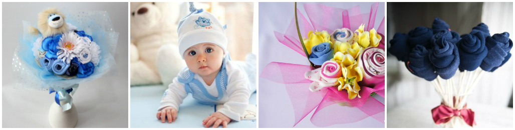 Если Вы хотите вложить в подарок все эмоции к малышу, которые переполняют Вас, то Вы легко можете сделать букет из одежды своими руками. Для этого нам понадобятся основа для букета (корзиночка, горшочек или даже маленькое ведерко), материалы для украшения (ленты, банты, цветная бумага, в общем, все, что пожелает душа), оберточная бумага и непосредственно предметы одежды. Итак, приступим: