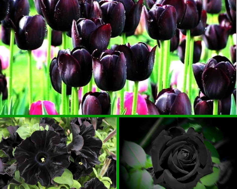 Вы никогда не видели черные розы, орхидеи или гладиолусы? Вы действительно очень много потеряли. Ведь на сегодняшний день уже можно увидеть черные тюльпаны, фиалки, ирисы, георгины, мальвы и даже, как это не парадоксально звучит, – черные каллы. Множество цветов доступны теперь и в этом оттенке, причем не за счет красителей, а в своем натуральном виде.