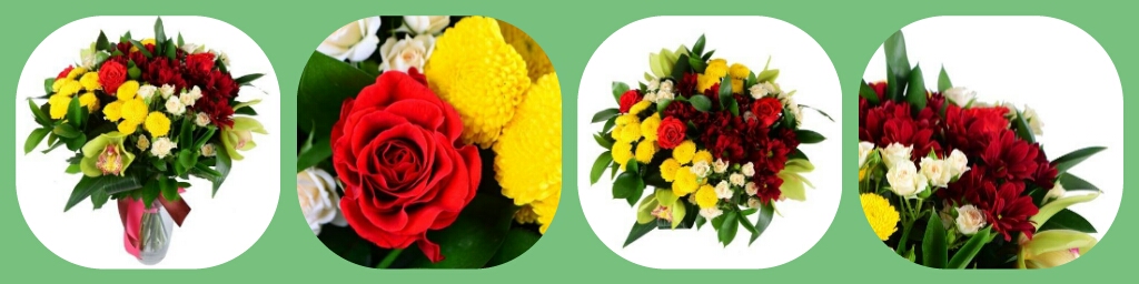 Это идеальное сочетание самых разных цветов – роз, орхидей, хризантем. За счет того, что цветы представлены в разных оттенках, они прекрасно дополняют друг друга: светлая зелень орхидеи выгодно оттеняет красные розовые бутоны. Смягчают это сочетание кремовые кустовые розы, а желтые хризантемы добавляют тепла и солнца.