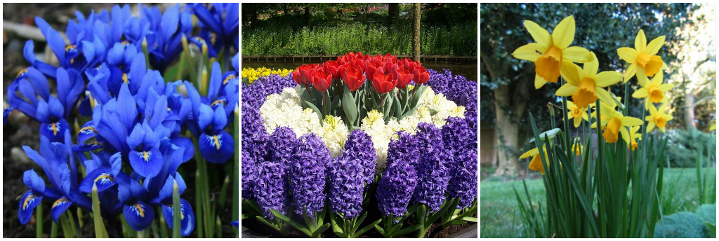 При создании композиций, используя цветы, которые цветут весной, на переднем плане нужно высаживать именно крокусы, пролески или подснежники, ведь они зацветают раньше. В удаленные места клумбы лучше посадить более поздние растения, цветущие весной – гиацинты, нарциссы, тюльпаны, мускари.