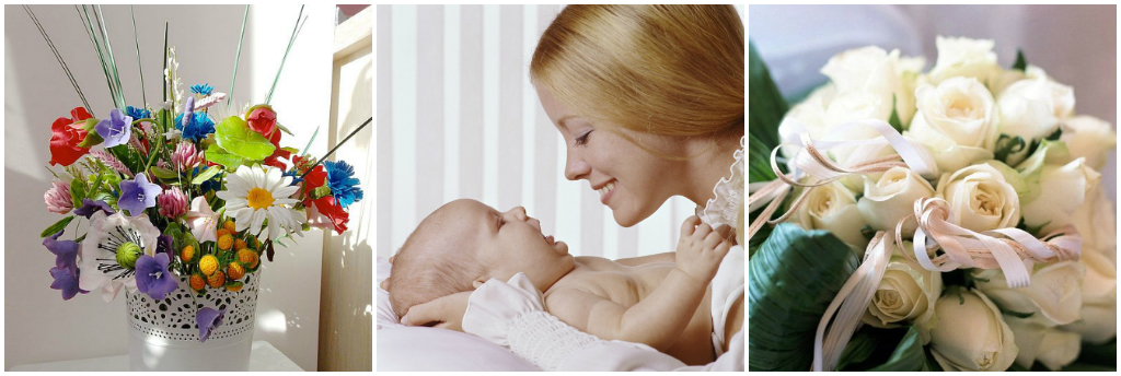 Можно принести в роддом букет из привычных для нас полевых цветов, белых роз, гербер или гвоздик. Помимо отсутствия интенсивного, навязчивого аромата, их пыльца еще и менее аллергенна. То есть риск появления различных аллергических реакций у малыша и мамы становится минимальным в сравнении с другими представителями флоры. Хотя полностью исключить вероятность появления симптомов гиперчувствительности нельзя.