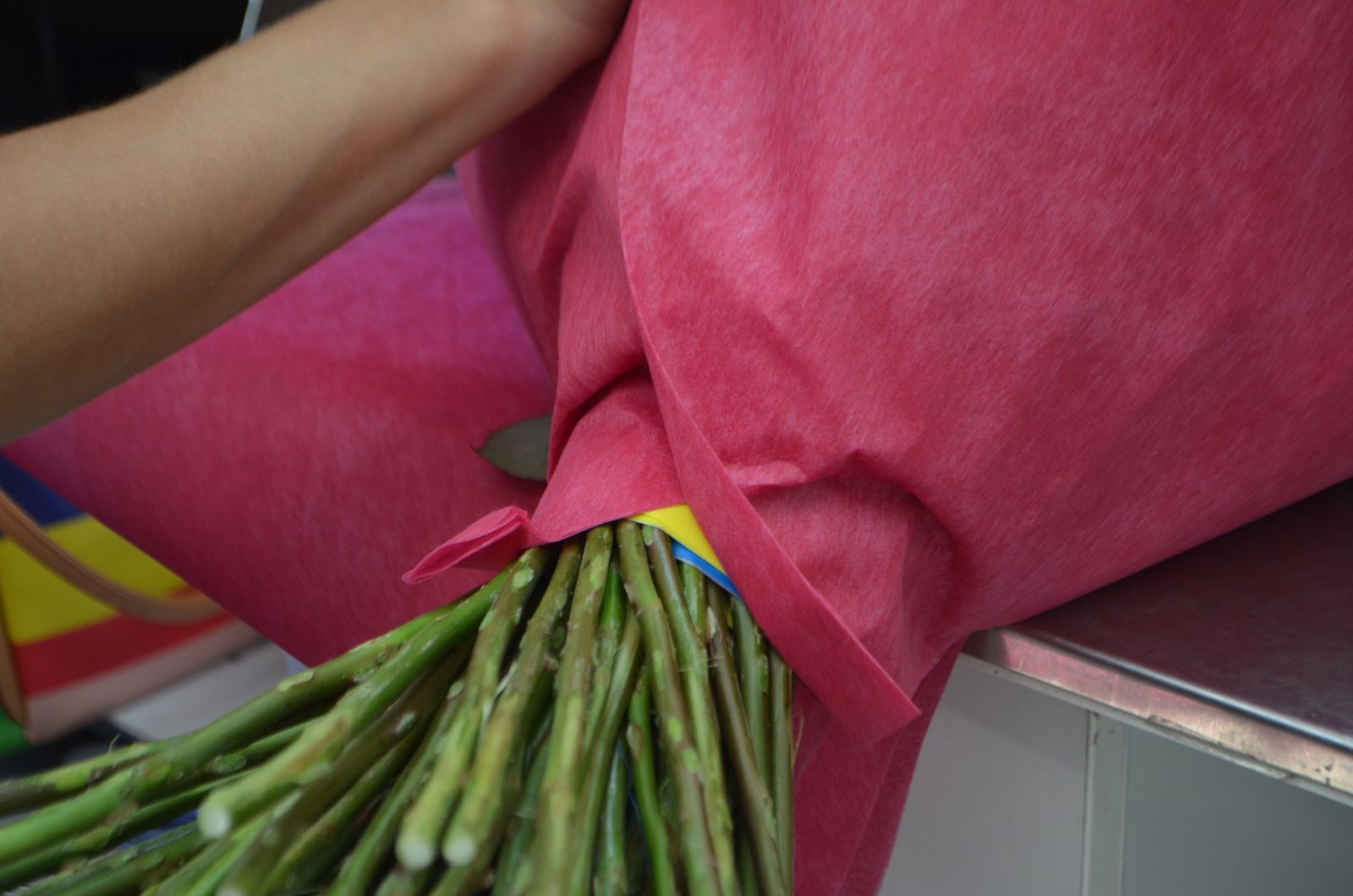 Мы выбрали флизелин: более мягкий, он красиво окутывает букет.