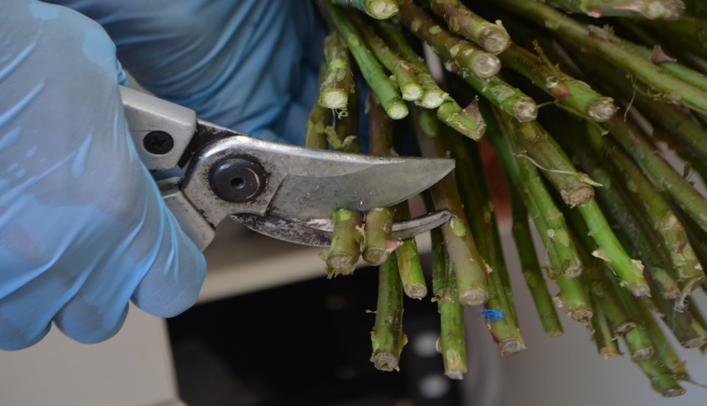 Аккуратно подравняйте секатором стебли роз.