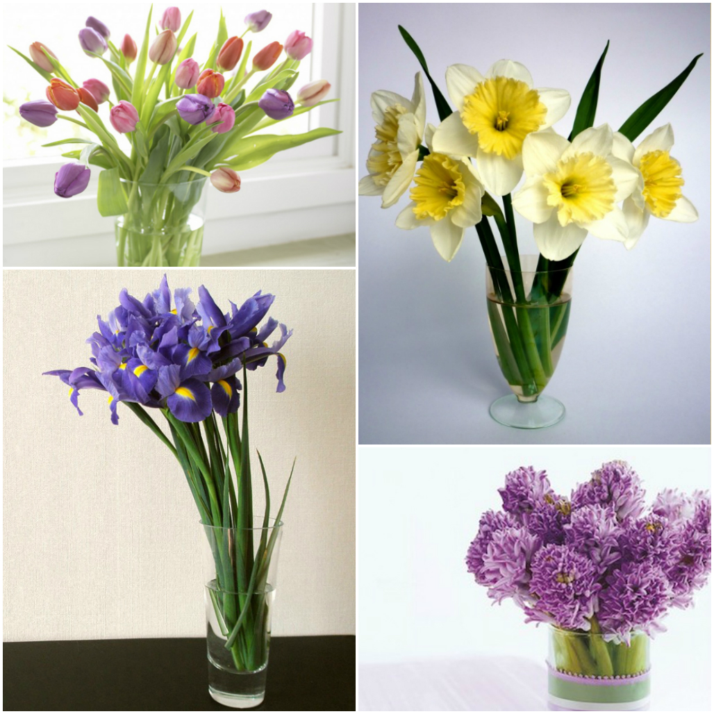 Отдельно стоит остановиться на том, как дольше сохранить цветы, которые относятся к луковичным (ирисы, гиацинты, тюльпаны, нарциссы). Перед тем, как поставить их в вазу, необходимо срезать луковицу, так как она не впитывает воду. Из стебля может потечь сок. Так как впоследствии он загустевает и не дает растению поглощать воду, сок нужно промокнуть и вытереть со стебля. Такие цветы лучше не ставить рядом с другими живыми цветами.