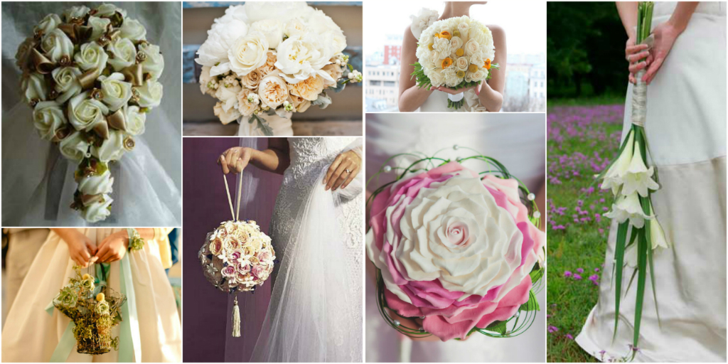 Первый критерий – комбинация тонов, ведь заурядность сегодня не в моде. Наоборот, в тренде гармоничное объединение образа молодоженов с оформлением церемонии, декором зала и машины, с внешним обликом свидетелей. Именно это решает, какой букет невесты выбрать.