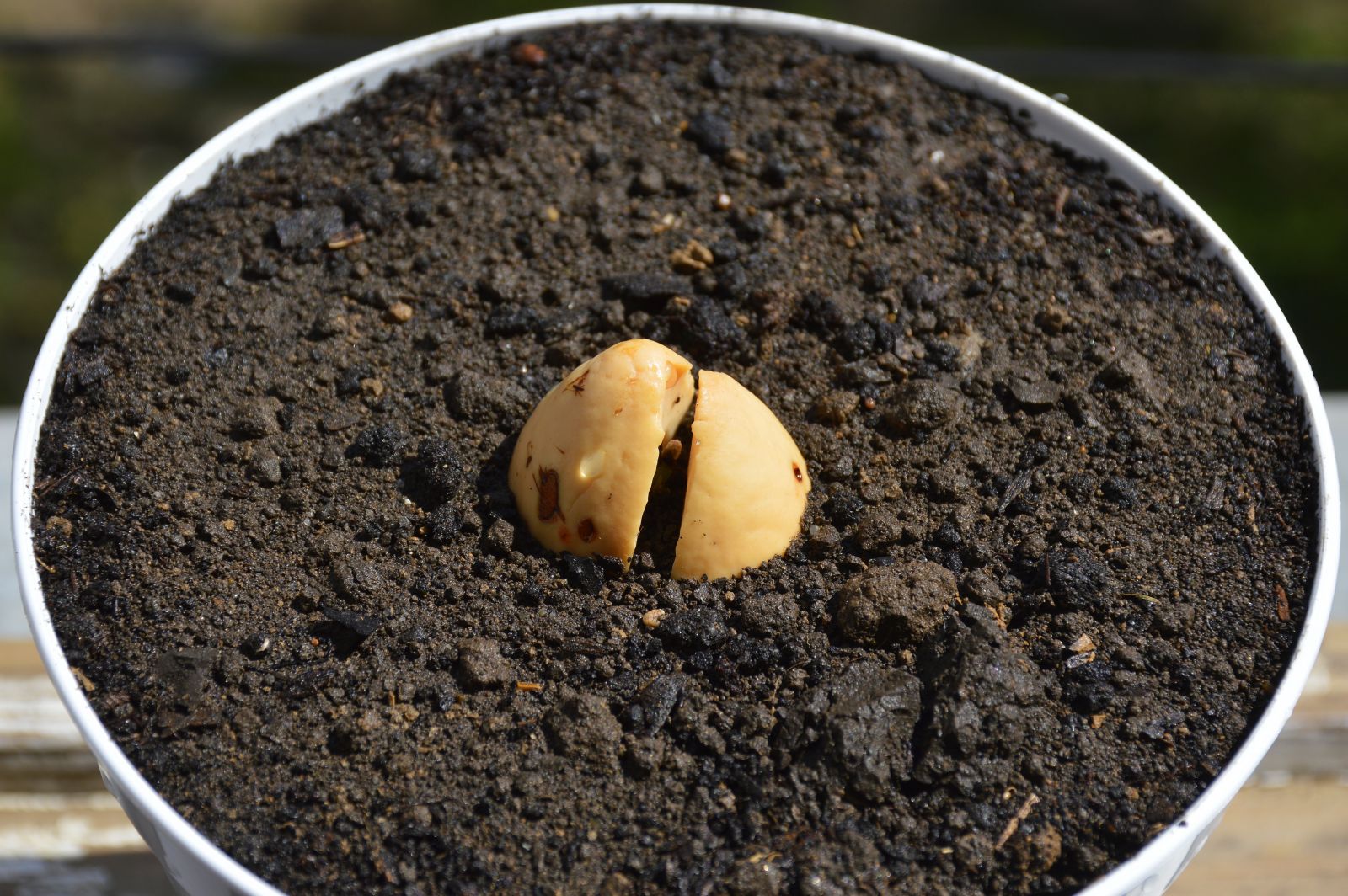 когда появится трещина посреди косточки, пересаживаем ее в землю.