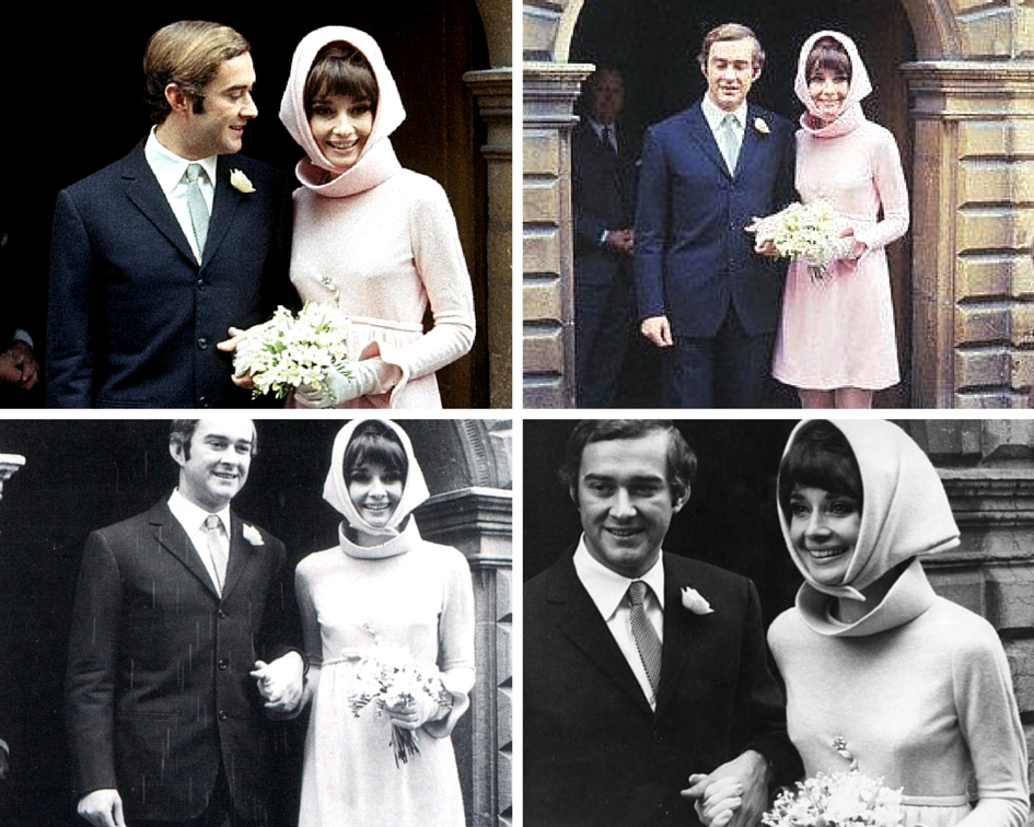 В 1969 году Одри Хепберн вышла замуж во второй раз. Избранником актрисы стал, на 9 лет моложе её, итальянский психоаналитик Андреа Дотти. Наряд для церемонии снова создает Юбер Живанши. На этот раз это было нежно-розовое мини-платье в форме трапеции с оригинальным воротником. Одри дополнила образ стильной косынкой в тон и букетом из белых фрезий.