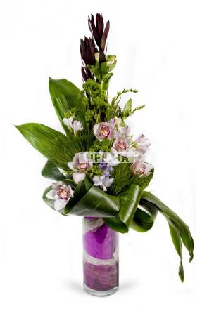 Становится очень популярным включение в цветочные композиции бутылок с алкогольными напитками - бутылку коньяка или вина, коробку сигар или туалетную воду, если это близкий мужчина, дорогого шоколада. Всё зависит от привычек и вкусов человека кому предназначен подарок и, безусловно, станет хорошим и солидным подарком по любому поводу.