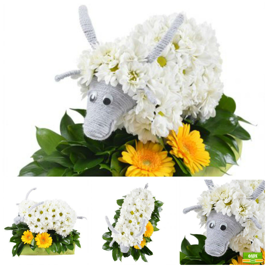 Специально для года Козы наши флористы подготовили красивейшую композицию из цветов в форме этого домашнего животного. Игрушка из цветов «Коза» - настолько оригинальный подарок к Новому году, что даже не требует никакого дополнения в виде сладостей или новогодних сувениров.
