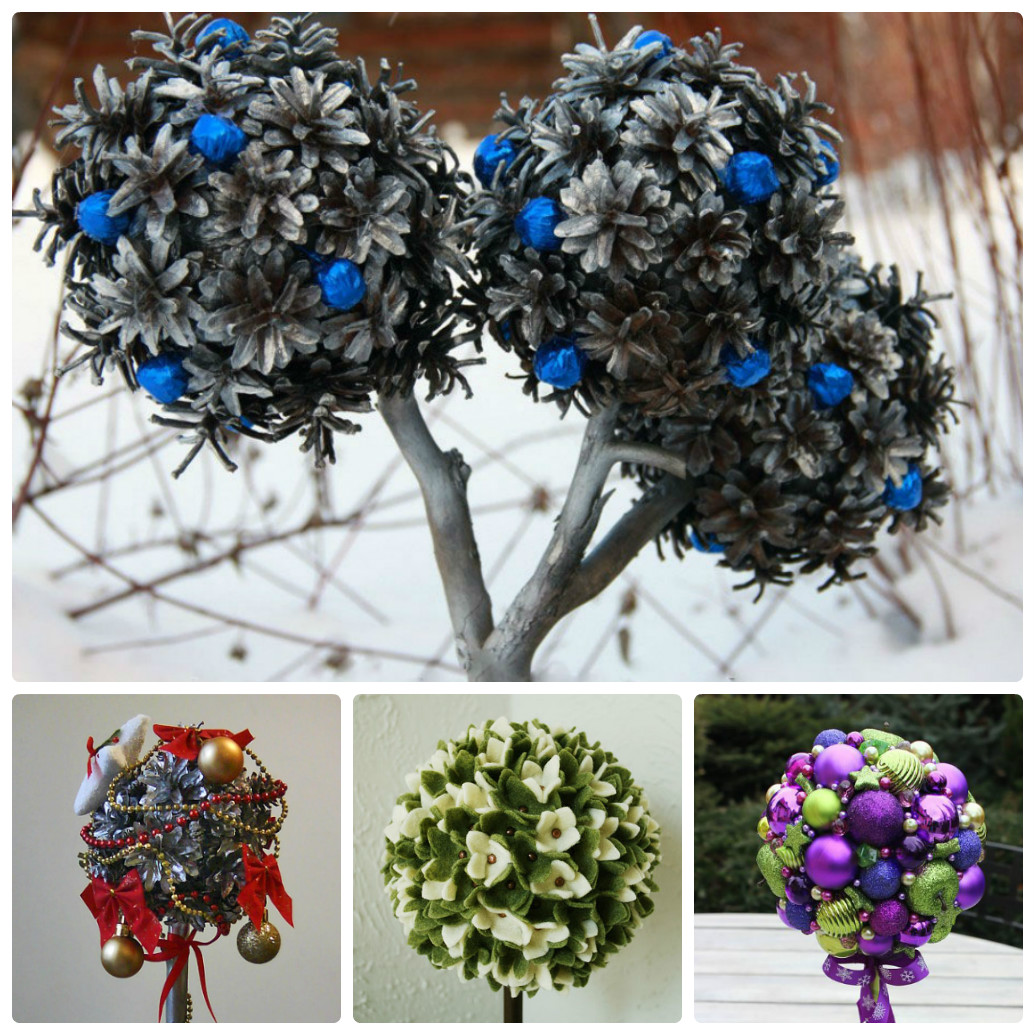 О том, откуда появилось дерево счастья и какие они бывают, читайте в нашей статье «Как сделать топиарную скульптуру». Мы же переходим сразу к делу, и хотим показать Вам несколько красивых идей декоративного дерева на Новый год. А во второй части статьи Вас ждет небольшой мастер-класс новогоднего топиария своими руками.