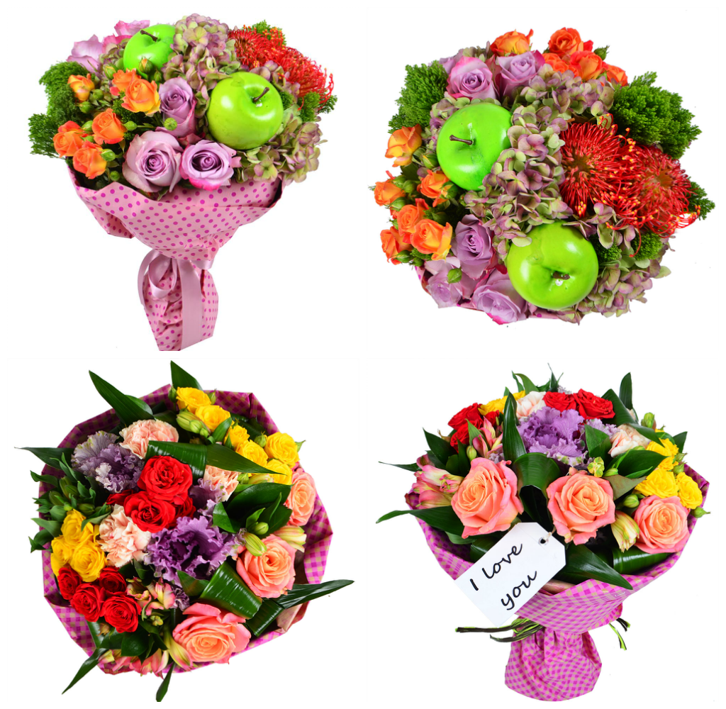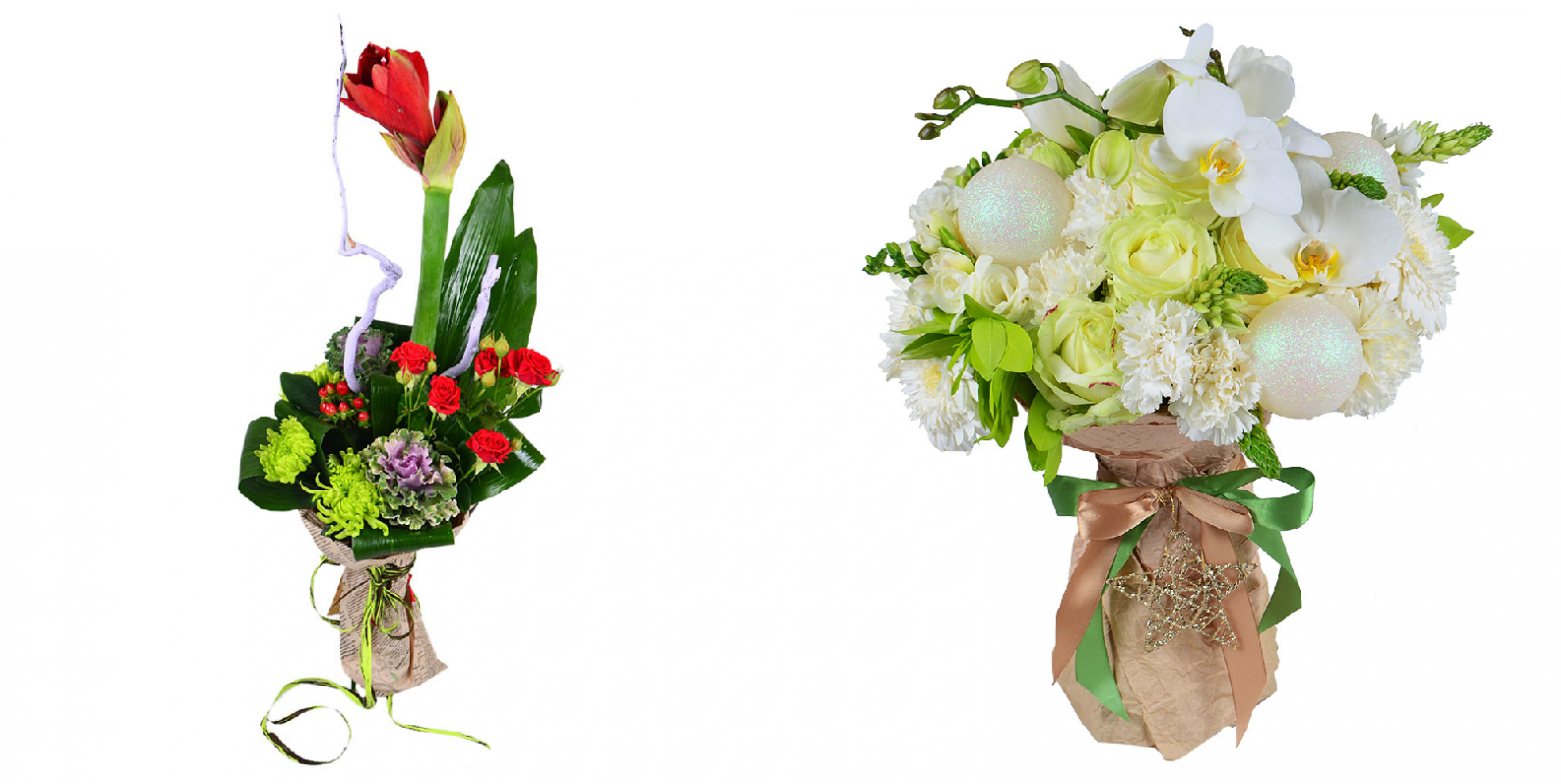 2. Букеты, помещённые в пакеты. Они могут стать отличным корпоративным подарком на Новый год.