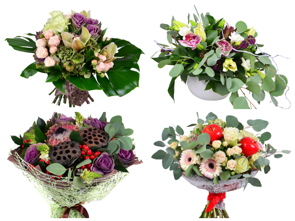 Новые букеты с капустой брассикой, лотосами, яблоками, эвкалиптом, протеями восхищают своей фантазийностью. Нестандартный подход к созданию цветочных композиций рождает настоящие шедевры!