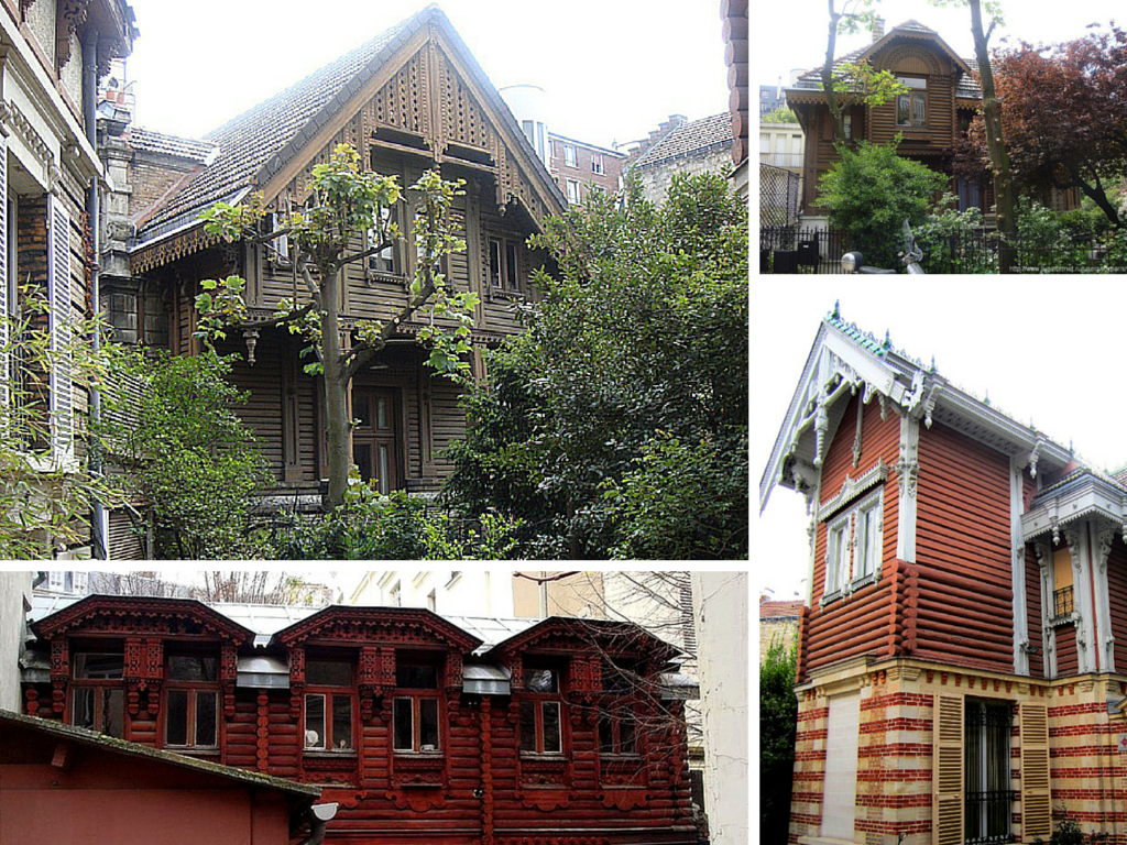 Достаточно современный городской пейзаж Пасси весьма разнообразили четыре классические российские деревянные избы. В далеком 1867 году их привез в Париж царь Александр II, чтобы представить на проходившей здесь Всемирной выставке. Домой на родину он их так и не забрал. Французам домики очень понравились, поэтому они обустроили их под жилище.