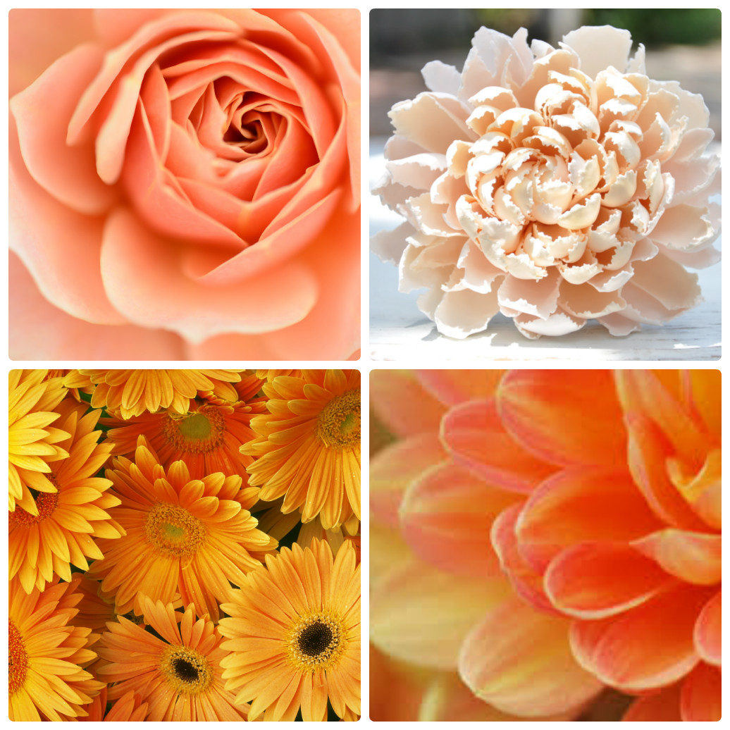 Четко представить или определить персиковый цвет невозможно: это широкий диапазон оттенков, от светло-оранжевого до темно-лососевого. Цветы разных оранжевых оттенков создадут прекрасную одноцветную композицию. Можно также разбавить цветы персикового цвета другими. Так как он принадлежит к теплым пастельным тонам, то прекрасно сочетается со всеми остальными из своей категории: