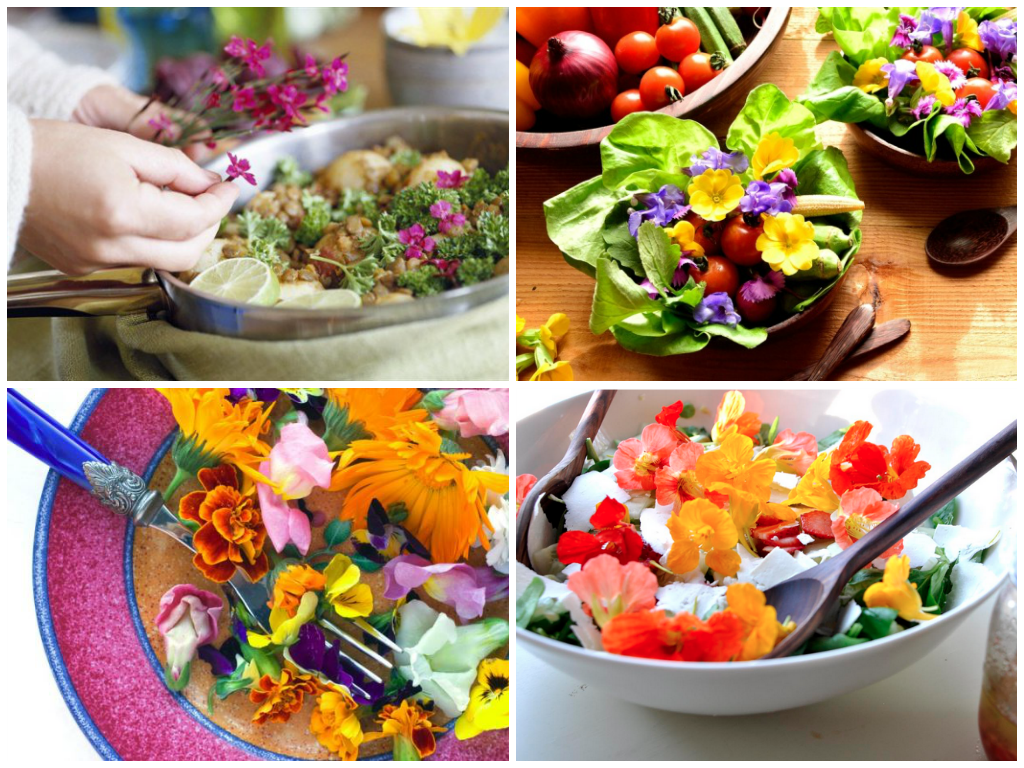 А теперь представляем список съедобных и полезных цветов: календула, клевер, ромашка, одуванчик, подсолнечник, гладиолус, шалфей, цветы яблони, вишни, тыквы, кабачка, брокколи, лука, анютины глазки, душистый горошек, бархатцы, лаванда, роза, гвоздика, садовые лилии, мальва, сирень, цветы пряных трав. Впечатляющий перечень, правда?