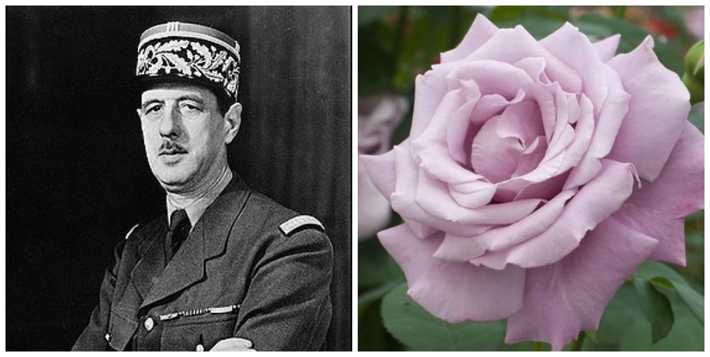 Но особого внимания в данной тематической группе хочется выделить розу «Шарль де Голль». Роза, посвященная этому великому политику имеет необычный и удивительный бледно-фиолетовый цвет и неповторимо удивительный аромат. Багодаря этому она собрала огромнейшее количество самых различных международных наград.