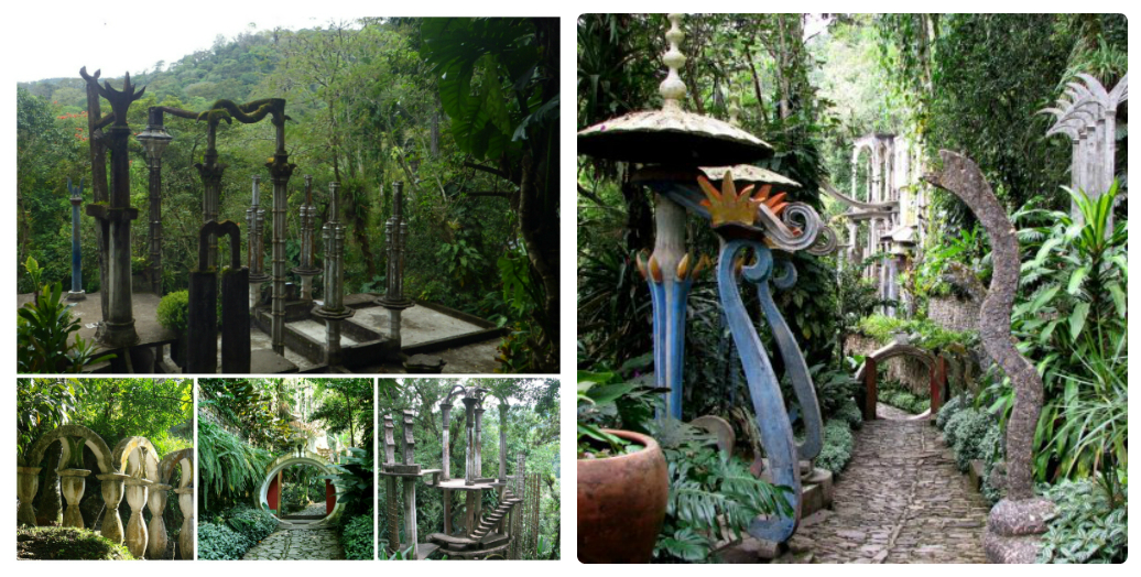 Для «Лас Позас» скульптором Эдвардом Джеймсом было создано 36 объектов. Винтовые лестницы, колонны, мосты и арки, покрытые мхом, поражают воображение.
