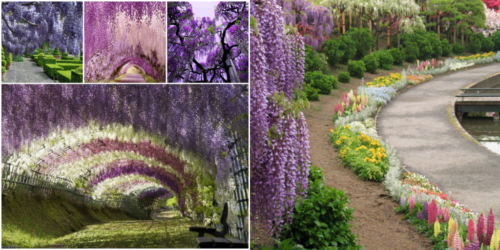 В парке «Асикага» растут глицинии самых разных расцветок: белые, сиреневые, голубые... Чтобы подчеркнуть их великолепие, японцы устанавливают арки-опоры: лианы оплетают их, создавая невероятной красоты тоннели. Погулять по этим магическим природным коридорам можно с апреля по конец мая. И поверьте, это великолепие обязательно нужно увидеть своими глазами!