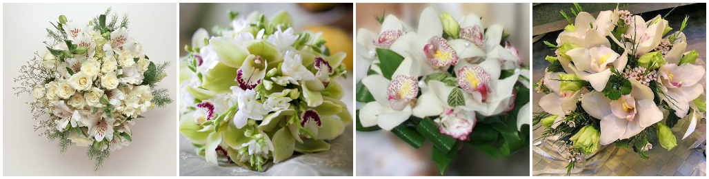 Огромное значение имеют и размеры букета. Его величина и пышность платья должно быть обратно пропорциональны. Иными словами, длинные платья лучше дополнять большими орхидеями сочных оттенков. Для пышного свадебного платья целесообразней подобрать более скромный однотонный букет. А, дополнив свой свадебный букет нежными камушками и лентами, вы создадите действительно неповторимый образ.