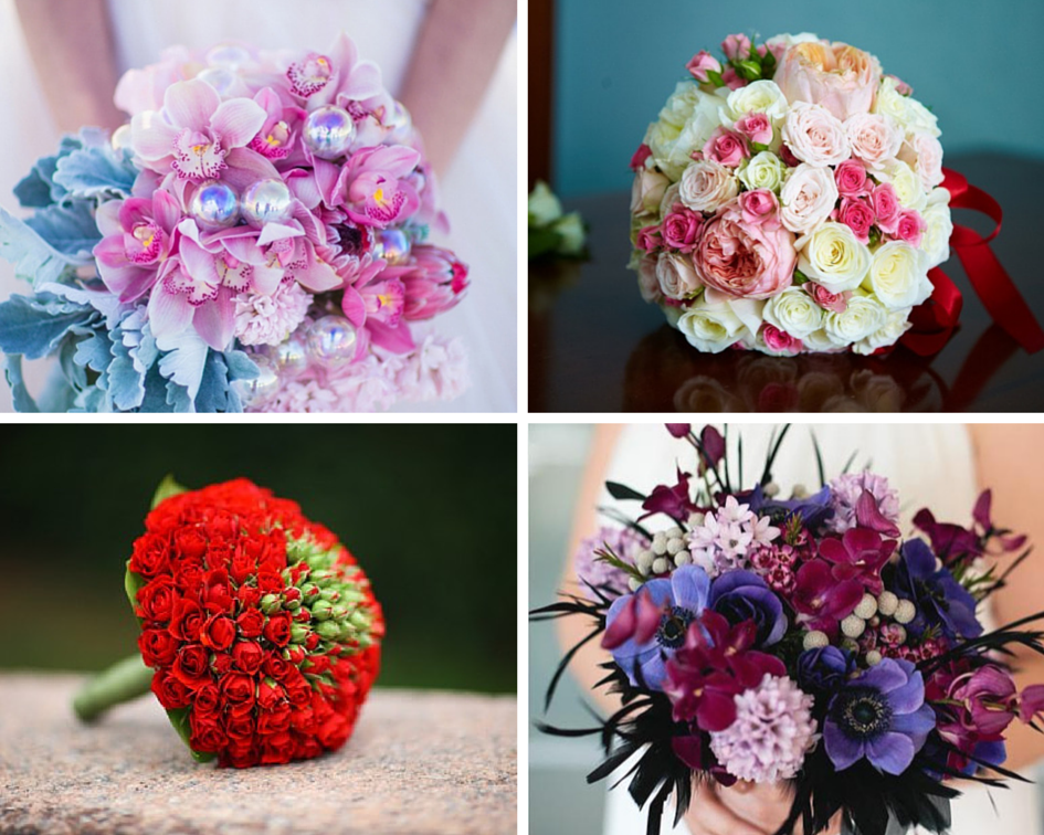 - выбираем цветы: на этом этапе Вы можете полностью довериться своему вкусу. Единственное требование – сочетаемость цветовых и контрастных нюансов и, конечно, долговечность – не забывайте, что букет должен сохранять идеальную свежесть даже после целого дня утомительных церемоний, фотосессий и поездок;