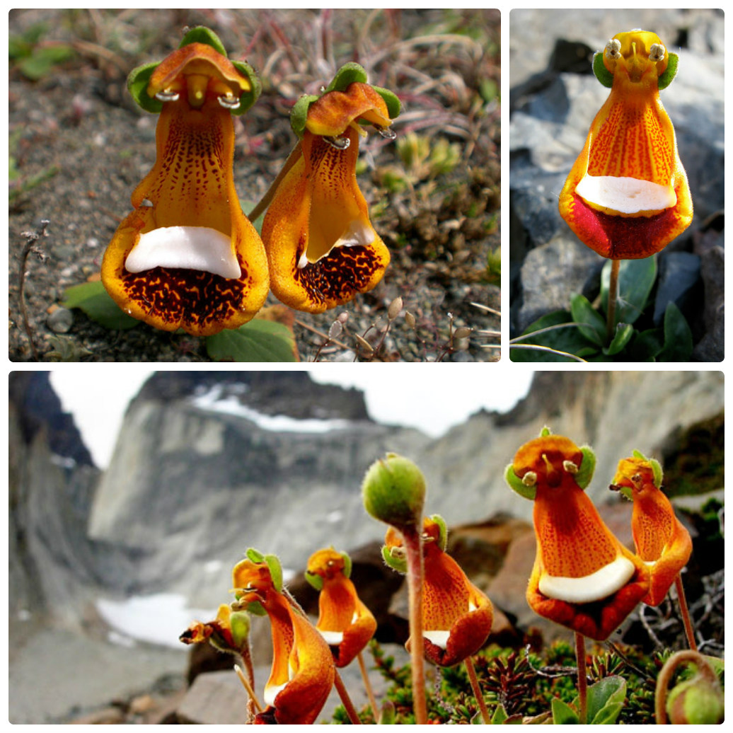Растение Calceolaria Uniflora, или «добродушный пришелец» ​принадлежит к роду Кальцеолярия и растет в горах. Впервые оно было обнаружено в Южной Америке. Его цветки желто-бело-бордового цвета достигают размера 10 см. Не нужно иметь богатое воображение, чтобы разглядеть в этом растении смеющегося инопланетянина с большими глазами и зелеными ушками.