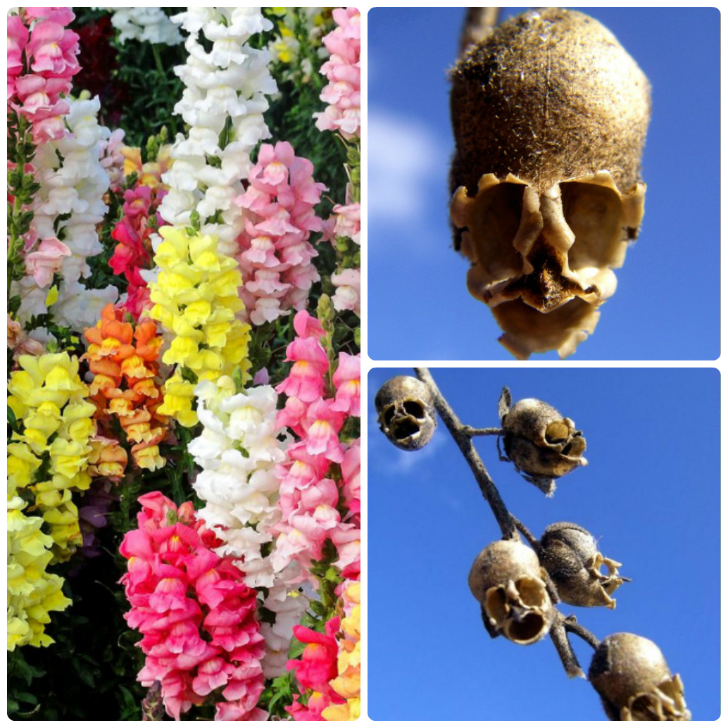 Весьма оригинальную и даже немного жутковатую форму имеют семена львиного зева - растения из семейства Подорожниковых. Цветет львиный зев красиво в белых, розовых, желтых или сразу в нескольких цветах. Но когда приходит время собирать семена, то вместо ярких цветочков Вы найдете человеческий череп.