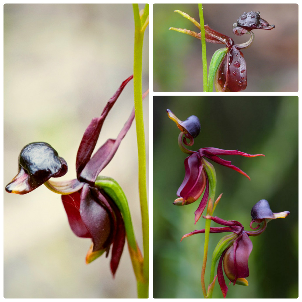 «Орхидея-утка» (Caleana Major) растет в Австралии и по форме точь-в-точь напоминает летящую утку. Но самцам пылильщикам цветок напоминает их самок, и когда самец подлетает к «подруге», то весь оказывается в пыльце и переносит ее на другой цветок. Так и происходит процесс опыления этого вида орхидей.