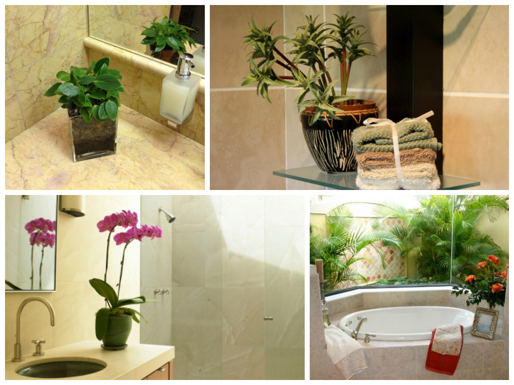 В глубине ванной комнаты можно расположить лиственные растения, например, аспидистры или аспарагусы. Небольшой совет: их можно поставить перед зеркалом, таким образом, они будут находиться под отраженным светом и визуально казаться больше. Если у Вас большая ванная, то Вам отлично подойдут крупные растения: фикус, папоротник, диффенбахия, калатея. Экзотическим гостем станет орхидея, которая отлично приживется в этих непростых условиях благодаря своему тропическому происхождению.
