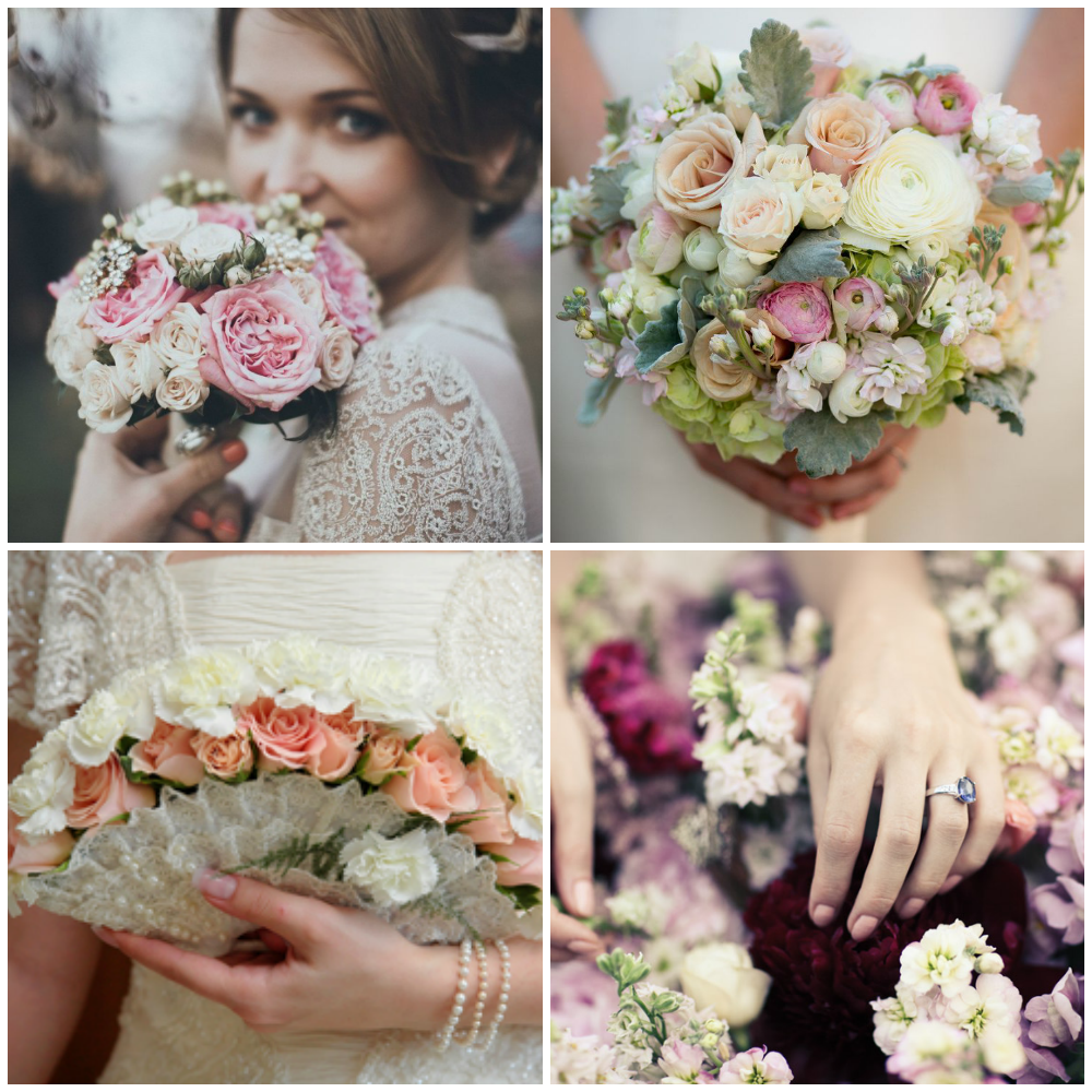 • сдержанные, пастельные тона близкие по гамме: букет в винтажном стиле не может быть выполнен в кричащих контрастных цветах;