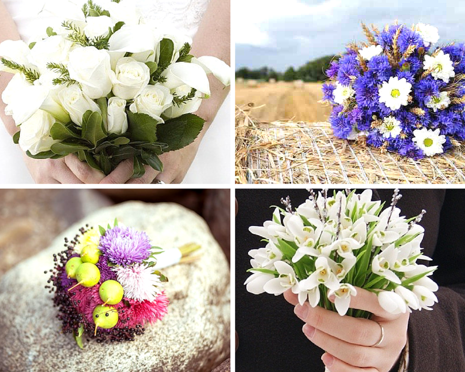 - выбирайте цветы по сезону – например, огненная композиция из астр и георгин станет отличным дополнением к осенней свадьбе, а роскошный белый букет невесты из роз и калл будет актуален зимой. Весной же можно позволить себе эксперименты с нежными подснежниками, а идеальные цветы для летней церемонии – это трогательные дары полей;