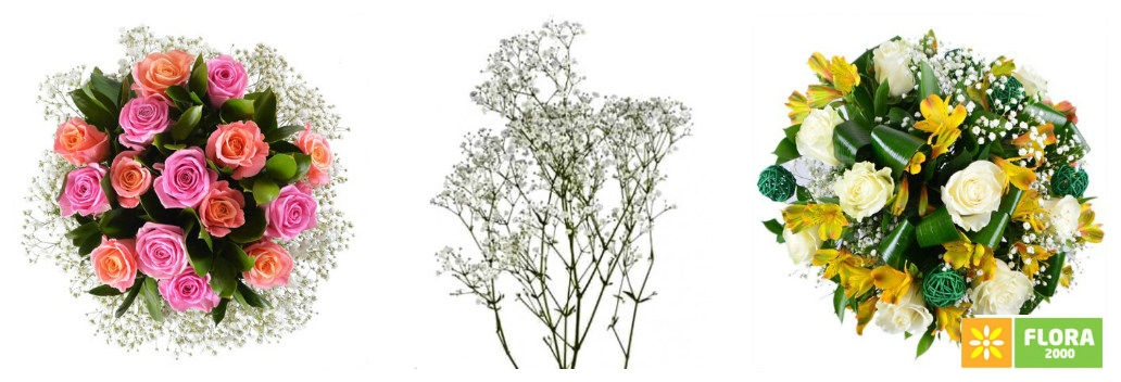 Гипсофилу считают королевой декоративной зелени, хотя и не совсем правильно называть ее зеленью. Это декоративное растение с белыми цветами на голых стеблях длиной от 10 до 50 см. Множество мелких соцветий добавляют в букет легкости и воздушности. Очень часто гипсофилу используют для свадебных и зимних букетов. А в последнее время она стала самостоятельным цветком.