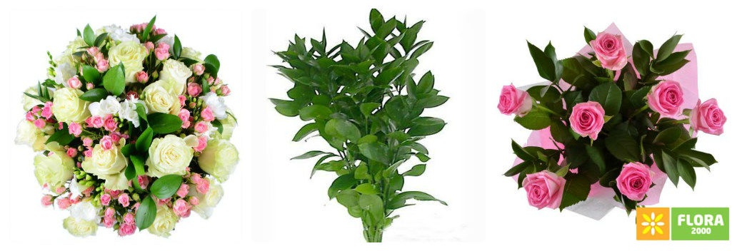 Это растение имеет мелкие, жесткие листья наподобие лимонных или мандариновых, которое прекрасно сочетается с  бутонами роз, орхидеями, герберами, лилиями. Как и большинство зелени для оформления букетов, рускус неприхотлив к внешним условиям, его листья долго сохраняют свежесть. Благодаря этой зелени композиция становится более пышной и фактурной.