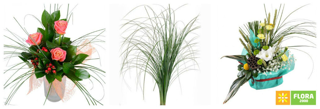 Травянистое растение берграсс используют в композициях собранным в метелки. Тонкие острые листики берграсса не только отлично справляются с ролью декоративной зелени в букетах, но и придают ему особой изысканности и аристократичности.