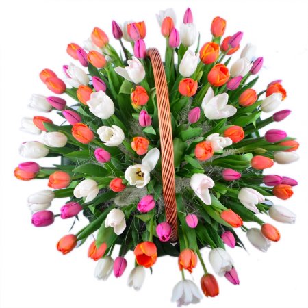 101 тюльпан в корзине
