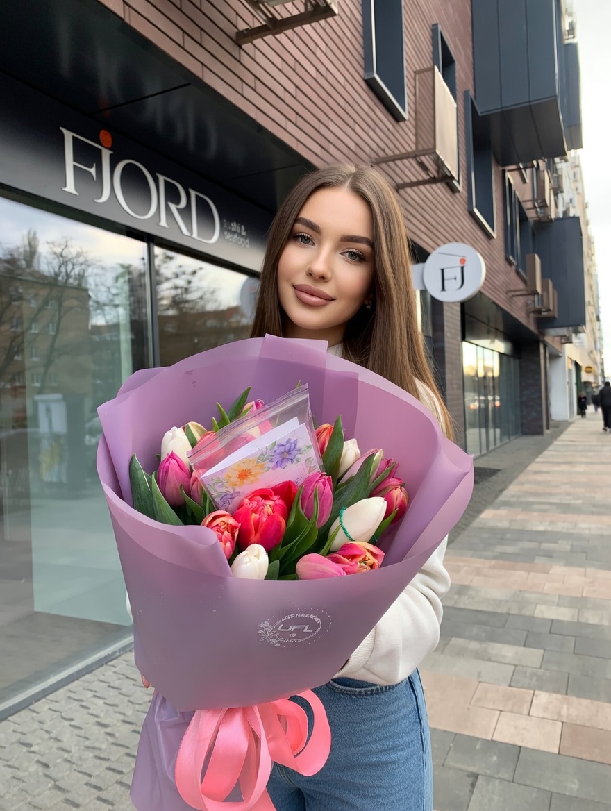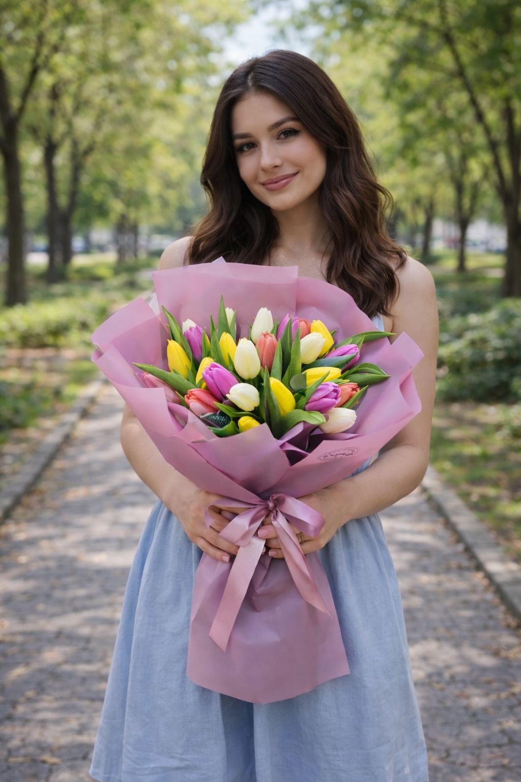 Заказать 25 тюльпанов микс в Кодыме — значит подарить эмоции и хорошее настроение. Такой букет часто выбирают для дня рождения.