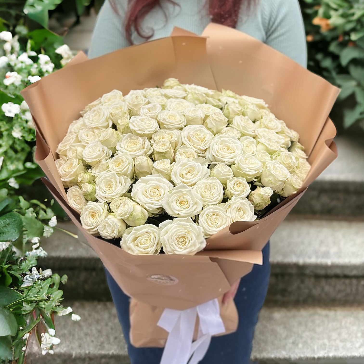 Купить Акция! 101 белая роза с доставкой по Киеву - Лесному