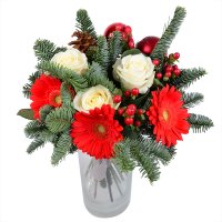 Во-вторых, Вы можете сделать необычные новогодние композиции собственными руками.  Поверьте, это совсем не сложно. Самыми интересными новогодними цветочными идеями с Вами делятся наши профессионалы в материале «Новогодние композиции из цветов: топ-5 интересных идей».